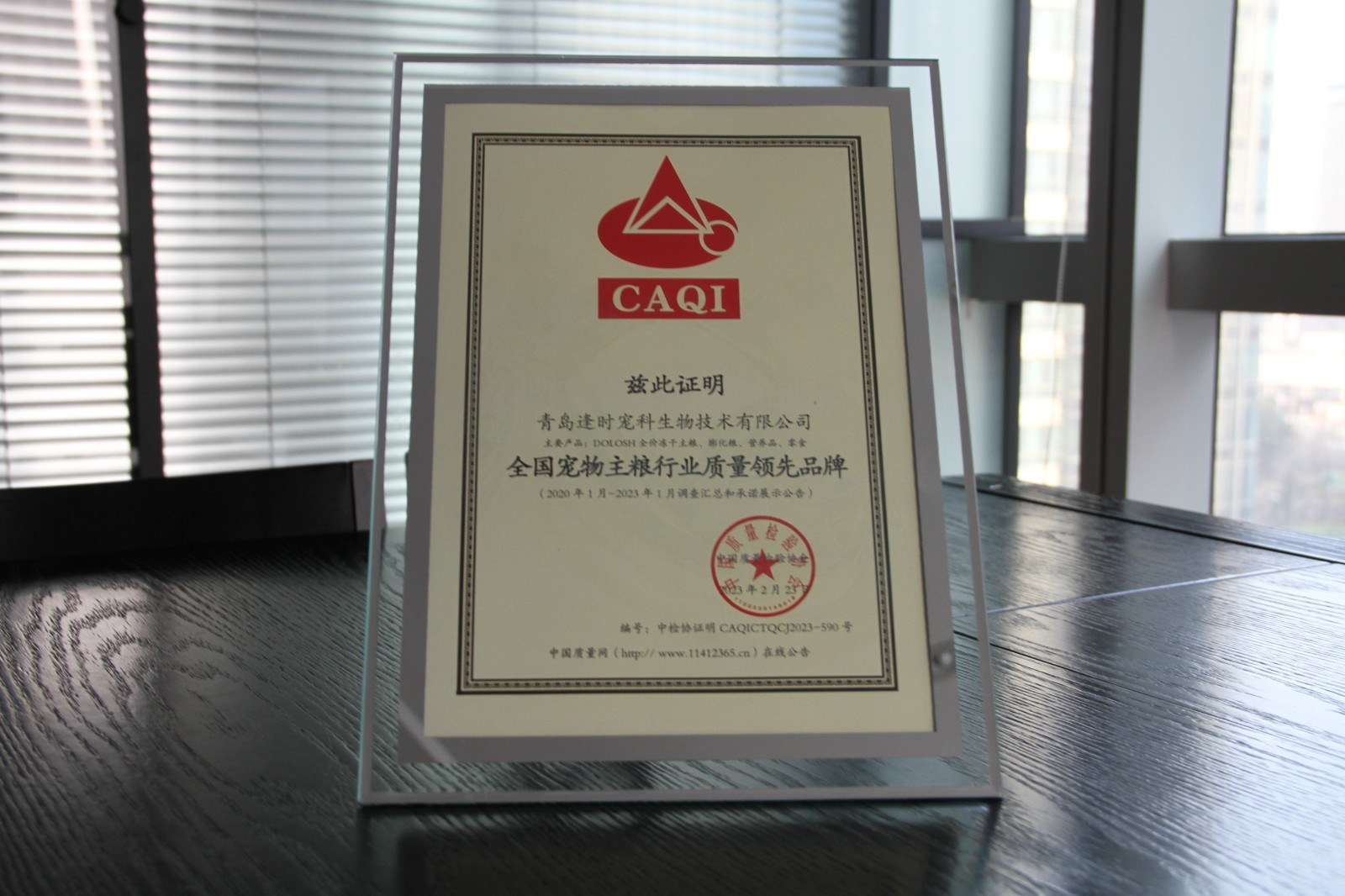 憑借過硬的產品質量及出色的服務體驗,中國質量檢驗協會評定青島逢時寵科生物技術有限公司為“全國產品和服務質量誠信示范企業(yè)”、“全國寵物主糧行業(yè)質量領先企業(yè)”;都樂時Dolosh品牌及“冠軍營養(yǎng)美顏系列”產品獲得“全國寵物主糧行業(yè)質量領先品牌”和“全國質量檢驗穩(wěn)定合格產品”榮譽稱號,被《中國消費者報》、《中國質量報》、《中國經濟網》和《中國質量網》等權威媒體廣泛關注與報道,為產品質量和服務信任注入強勁動力。